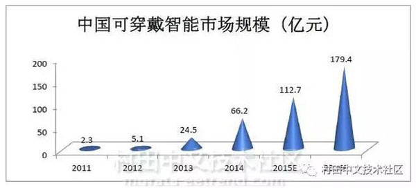 首先是可穿戴设备、穿戴医疗等消费电子领域。中国可穿戴智能设备的发展从2010年起步,近几年开始得到发展,2014年市场规模达到66.2亿元,预计2015年中国可穿戴设备市场将达到112.7亿元,同比增长70.2%。尤其是随着中国5G时代的到来,互联之下可穿戴设备将会迎来爆发式增长。