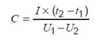 5、测量电容器两端电压从U1到U2的时间t1和t2,如图所示,根据下列等式计算电容量值: